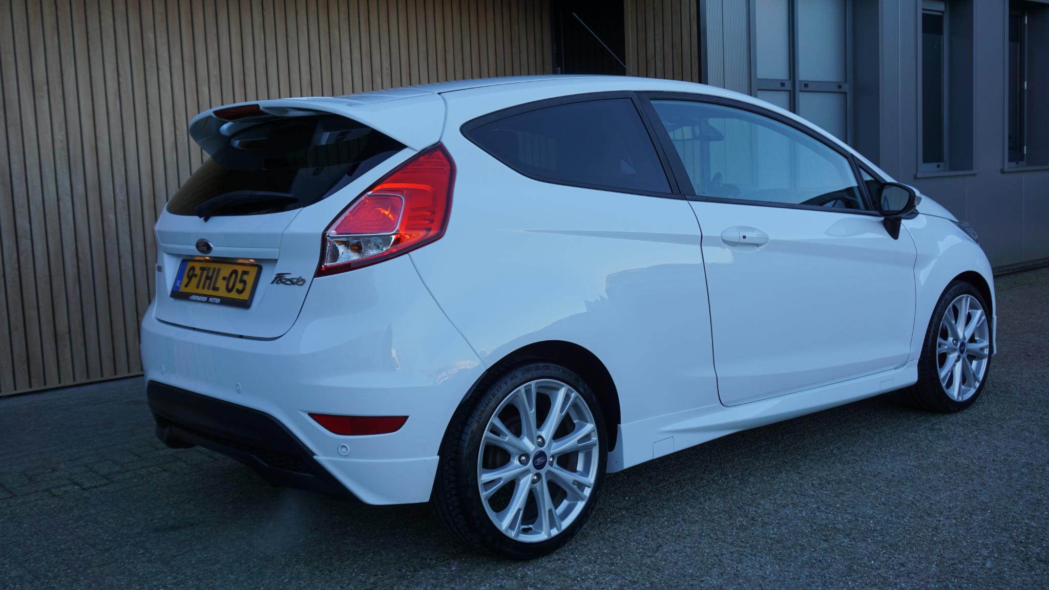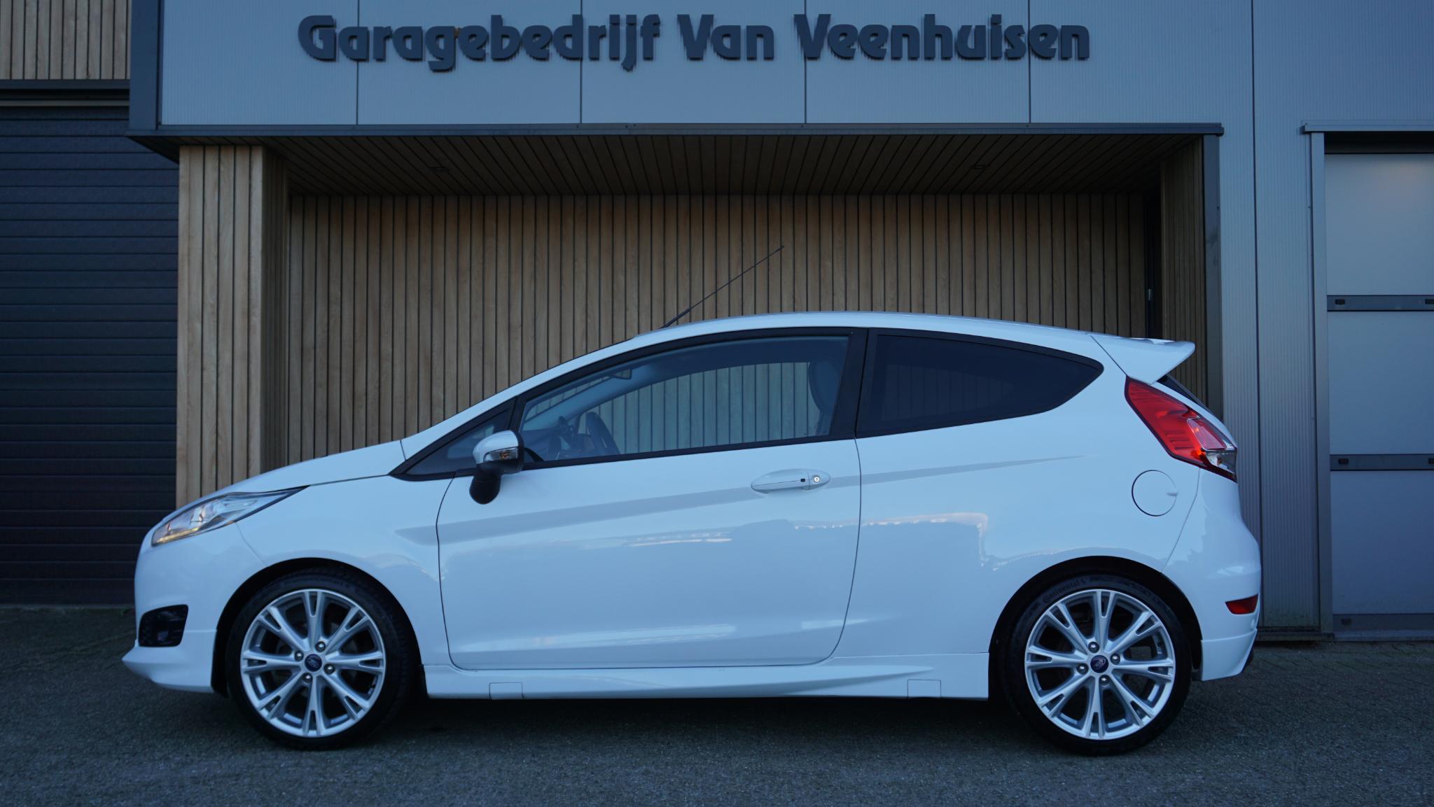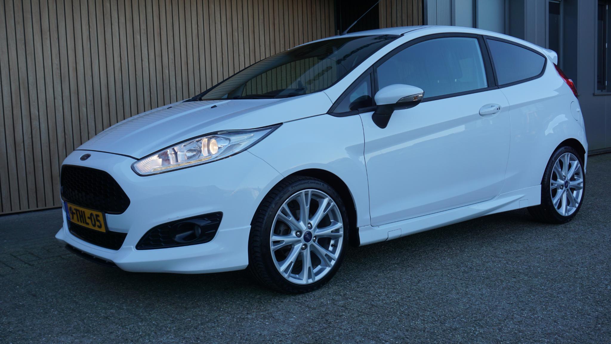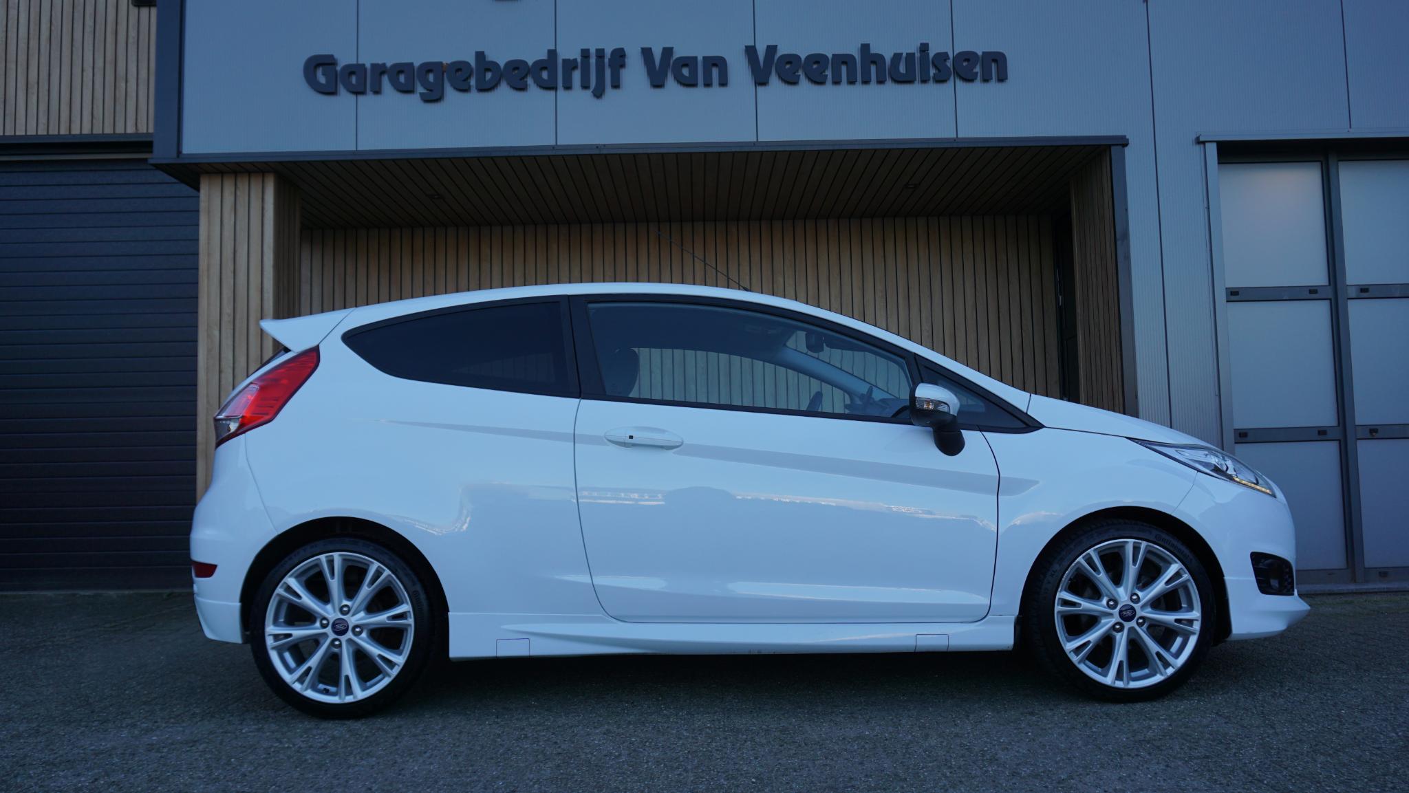 Door inruil verkregen, nette en goed rijdende Ford Fiesta 1.0 92kw/125pk 3-Deurs Sport (St-Line) Betreft een originele Nederlandse Ford. Afkomstig van de 2e eigenaar. Af-fabriek gespoten in de frisse kleur Frozen White uni-lak. Met origineel 169196km Tellerrapport aanw. Verder is de Ford voorzien van o.a. Sportstoelen met Leder bekleed.17inch LM velgen.Keyless Entry/Go.Grote achtespoiler.Navigatiesysteem.Stoelverwarming.Bluetooth.PDC.Multi-stuurwiel.Climatronic.Armsteun voor.LED dagrijverlichting.Mistlampen voor.2xsleutel aanw.Onderhoudsboekjes aanw.