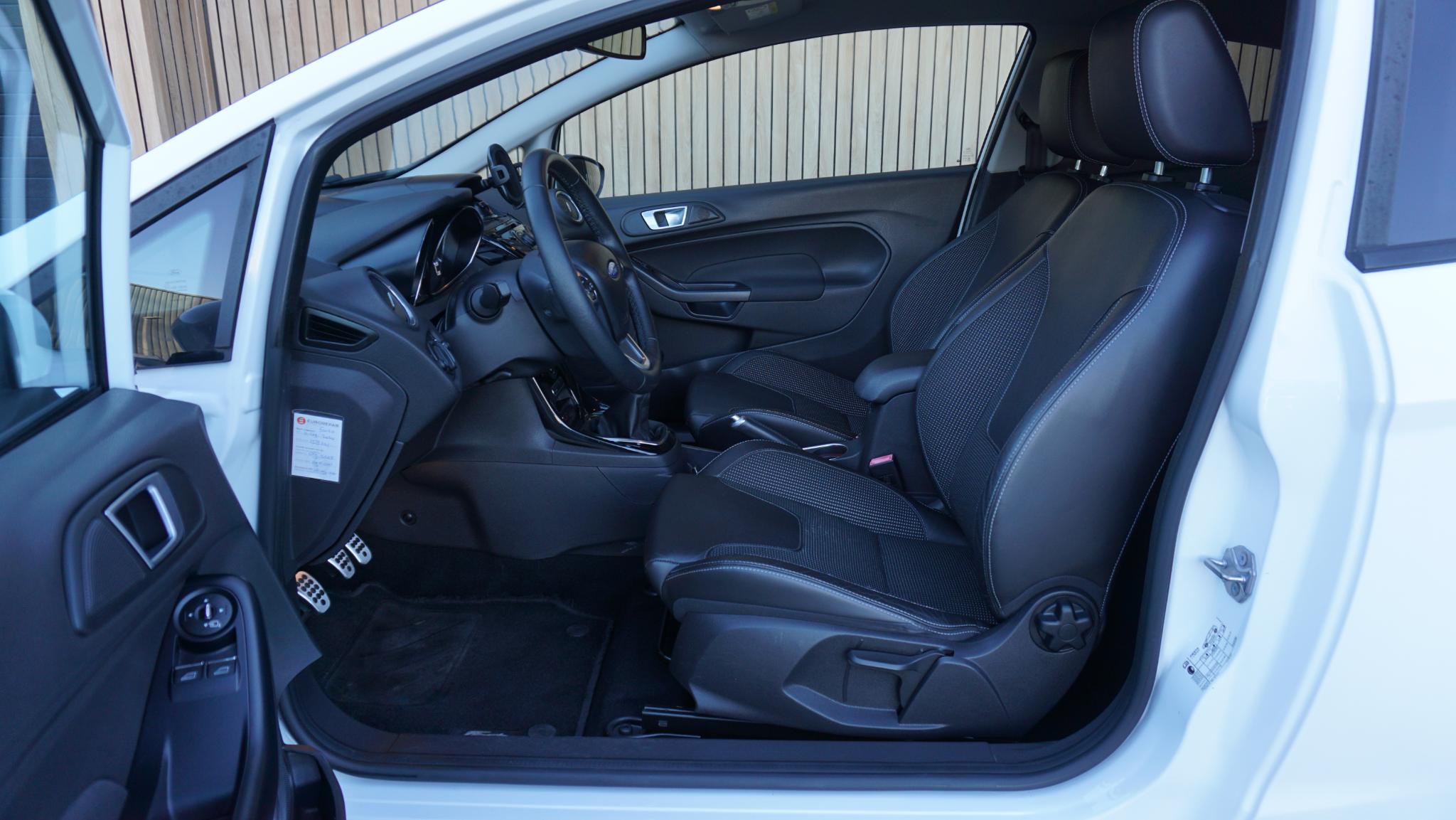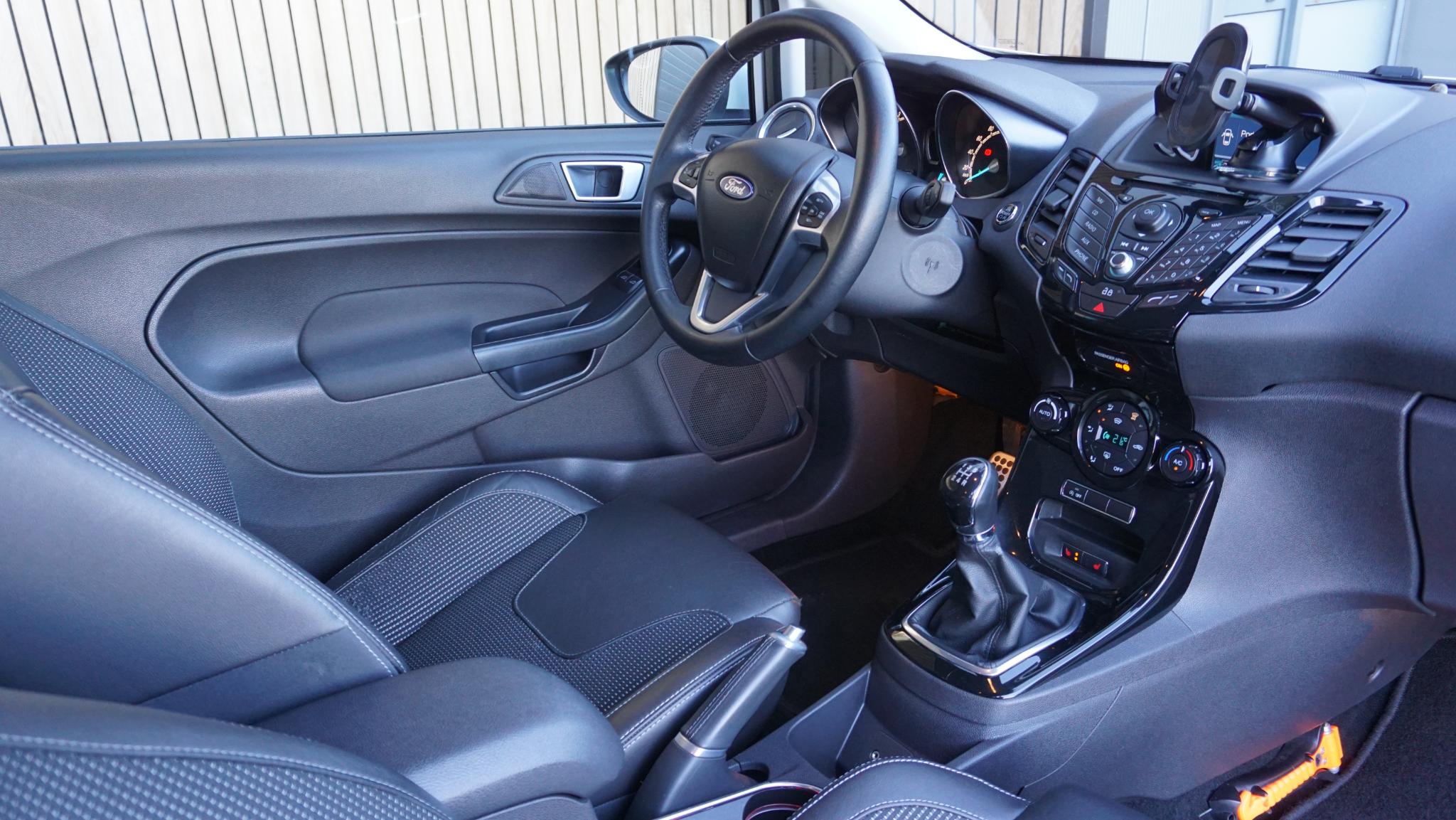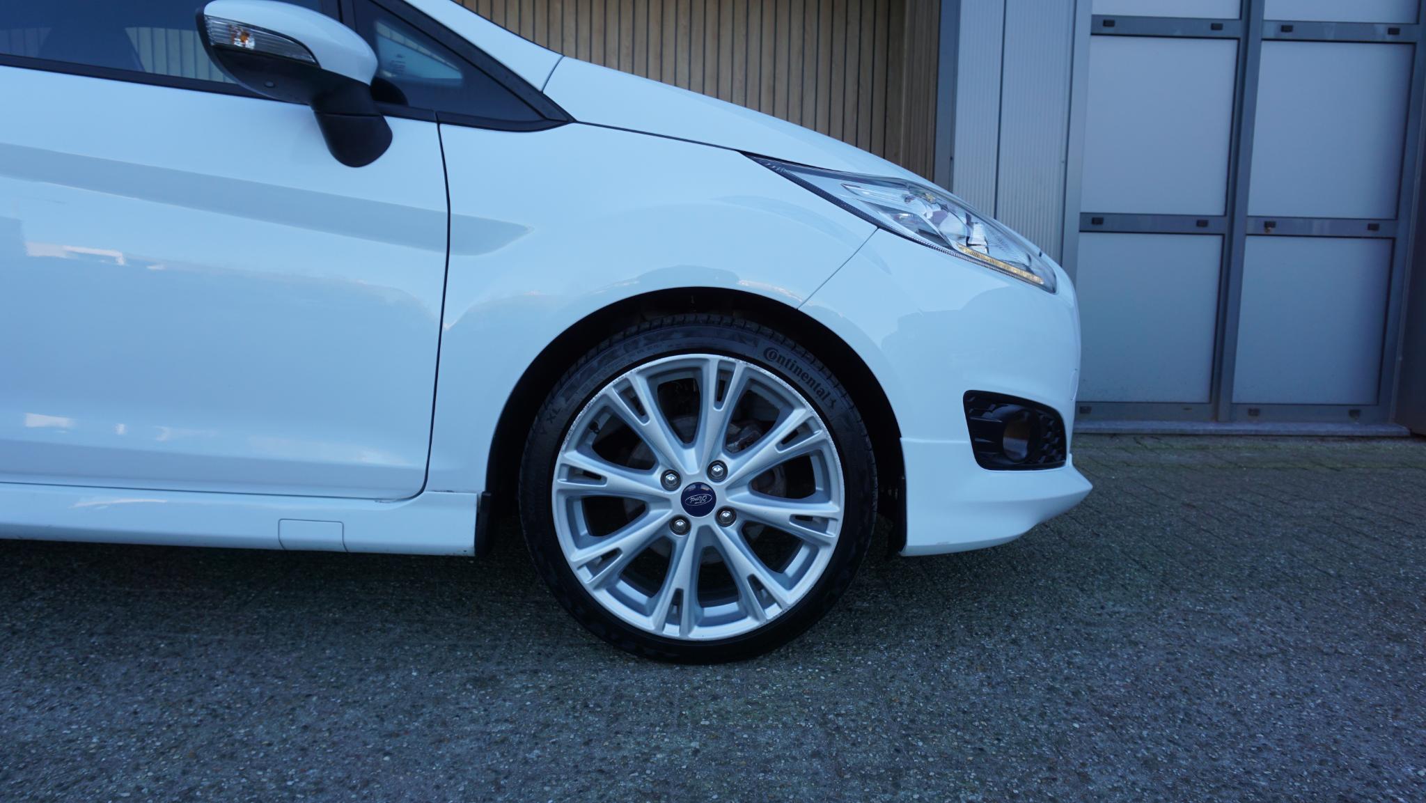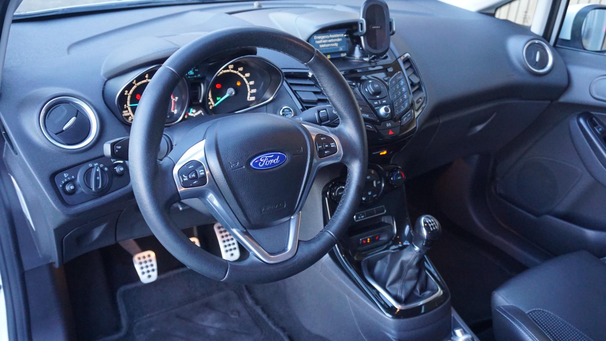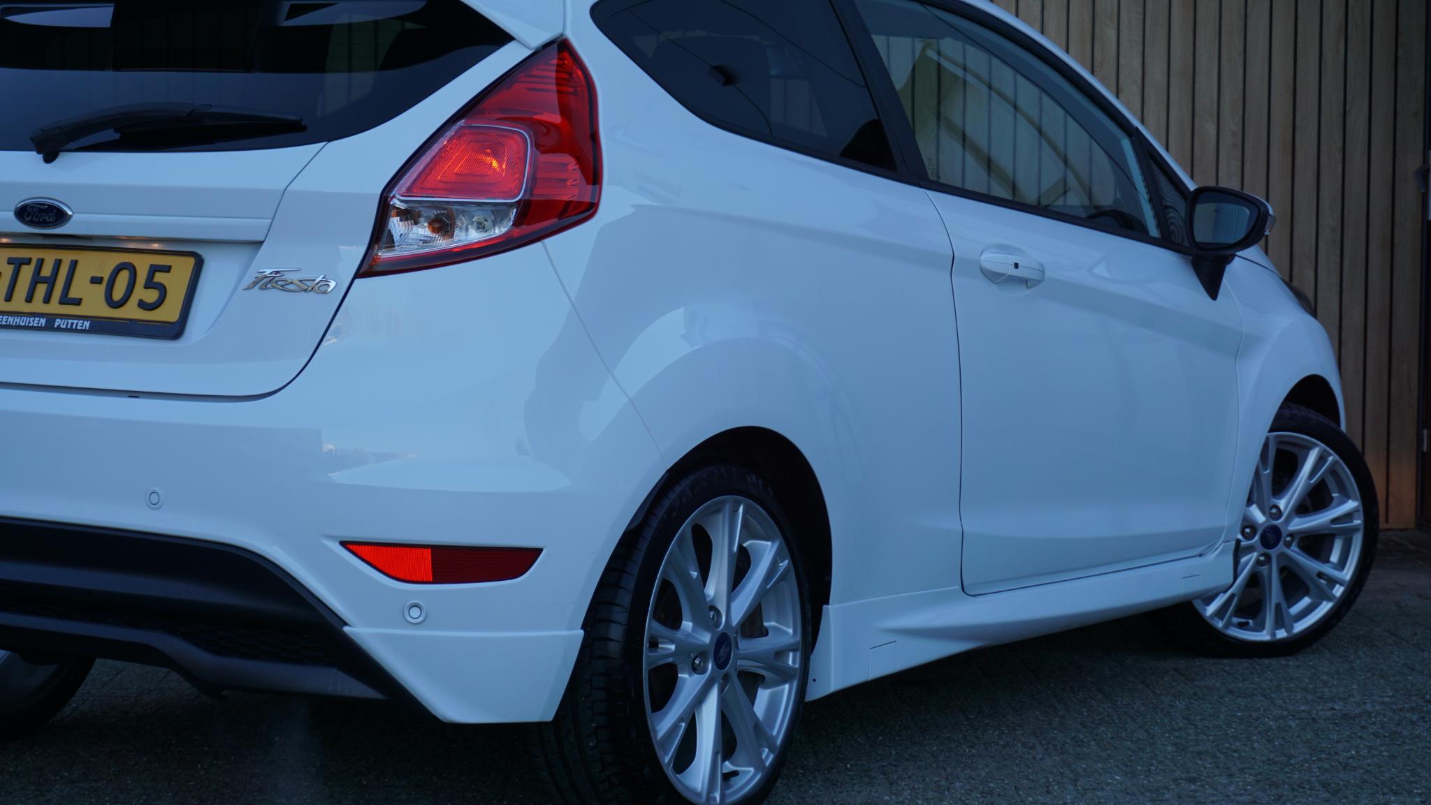 Door inruil verkregen, nette en goed rijdende Ford Fiesta 1.0 92kw/125pk 3-Deurs Sport (St-Line) Betreft een originele Nederlandse Ford. Afkomstig van de 2e eigenaar. Af-fabriek gespoten in de frisse kleur Frozen White uni-lak. Met origineel 169196km Tellerrapport aanw. Verder is de Ford voorzien van o.a. Sportstoelen met Leder bekleed.17inch LM velgen.Keyless Entry/Go.Grote achtespoiler.Navigatiesysteem.Stoelverwarming.Bluetooth.PDC.Multi-stuurwiel.Climatronic.Armsteun voor.LED dagrijverlichting.Mistlampen voor.2xsleutel aanw.Onderhoudsboekjes aanw.
