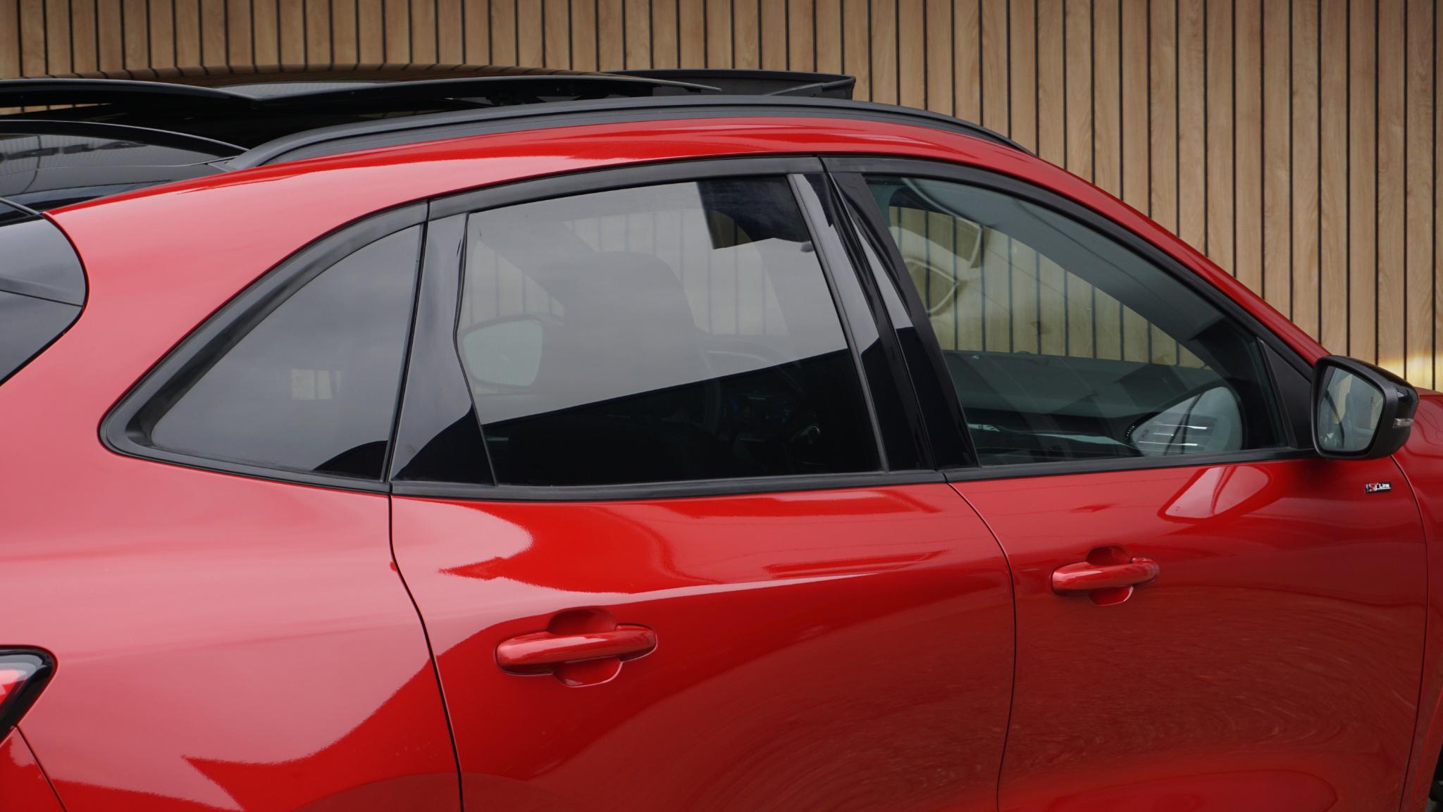 In zeer nette staat verkerende Ford Kuga 2.5 PHEV 165kw/224pk ST-Line X + Black Pack Edition. Volledig onderhouden. Met origineel 33900km. Af-fabriek gespoten in de prachtige kleur Lucid Red Pearl Metallic. Destijds geïmporteerd door de Ford dealer. Verder is de Ford voorzien van o.a. 20inch LM velgen Hoogglans zwart.Full Map Navigatiesysteem Touch.Bluetooth.Multi-Media.DAB/FM Camera voorzijde/achterzijde.App-Connect.Stoel verwarming voor/achter.stuurwielverwarming.Leder/Alcantara ST-Line stoelen.Head-up display.Adaptive Cruise Control.BLIS.Ambiance verlichting.Sport/Normal/Snow modus.Virtual Cockpit.Deurrand beschermers.Elektrisch bedienbare achterklep.isofix.Bumpers/spiegels in kleur.2xsleutel aanw.