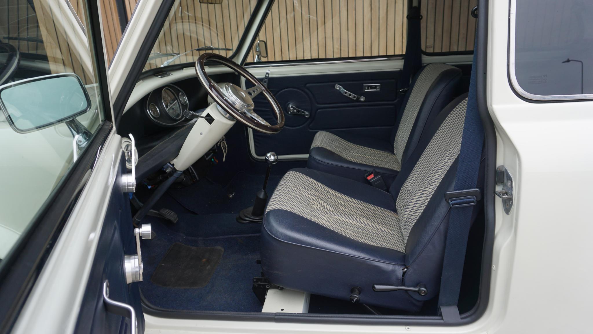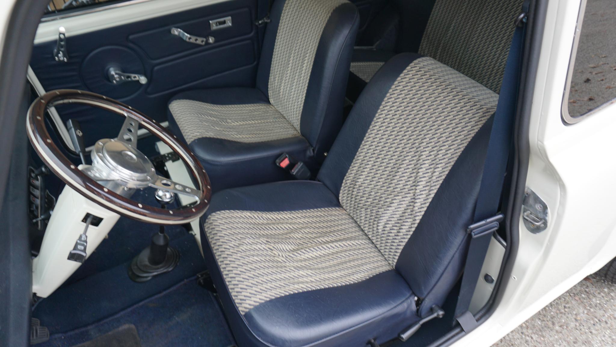 Uit Privé collectie te koop. Austin Mini 1100 Special. Betreft een originele Nederlandse Mini. in Verleden gerestaureerd en in uni-white gespoten(origineel blauw) afgelezen km. Stand 7542km. De Mini is voorzien van o.a. Houtenstuurwiel.LM.velgen.Getinte ramen rondom.Grootlichtlampen.Chrome accenten exterieur.Verbrede-spatborden.2